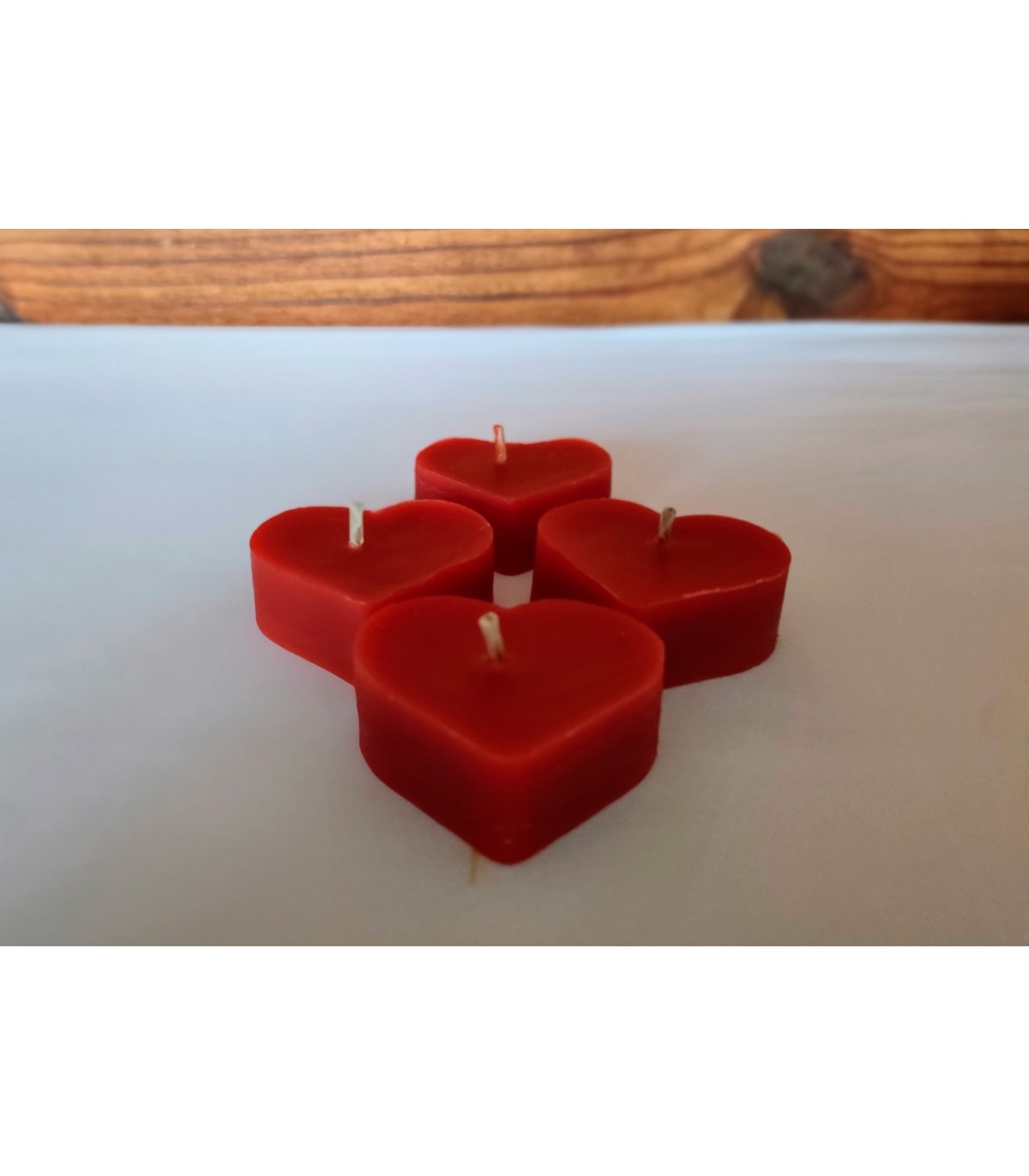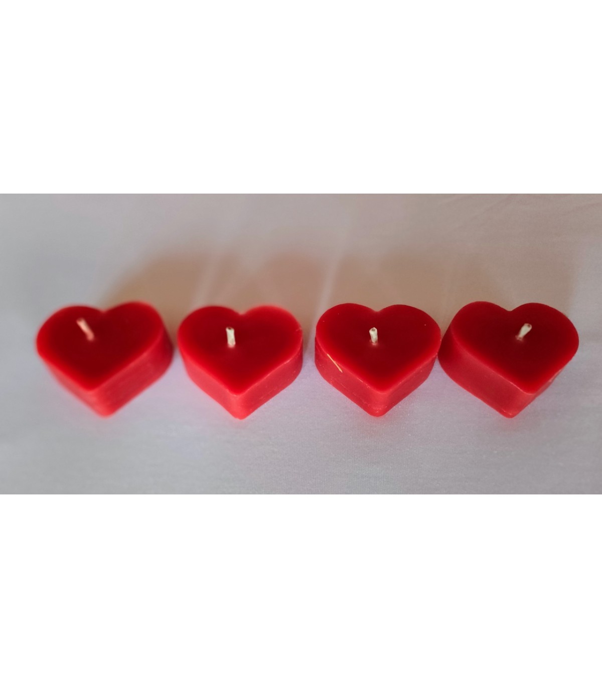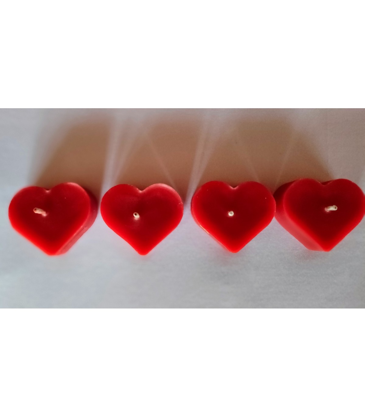 Elegancki zestaw czterech świec w kształcie serca, wykonanych w 100% z naturalnego wosku pszczelego. Idealny jako dekoracja, prezent (Walentynki, rocznice, ślub) lub element romantycznej aranżacji wnętrz.