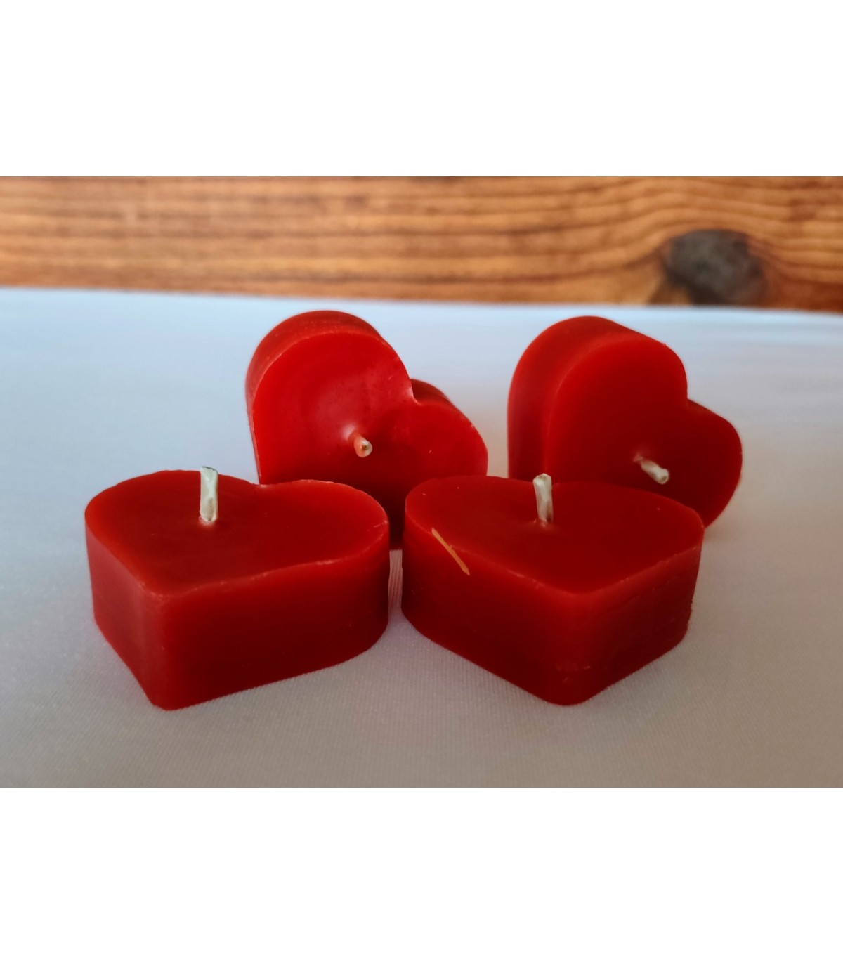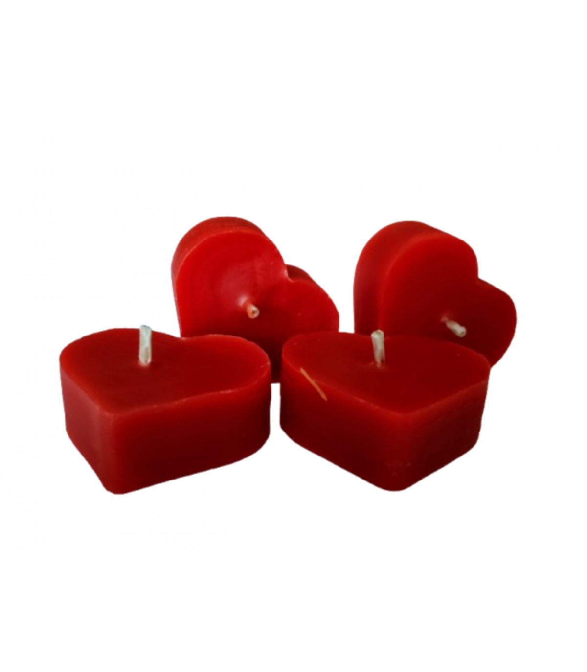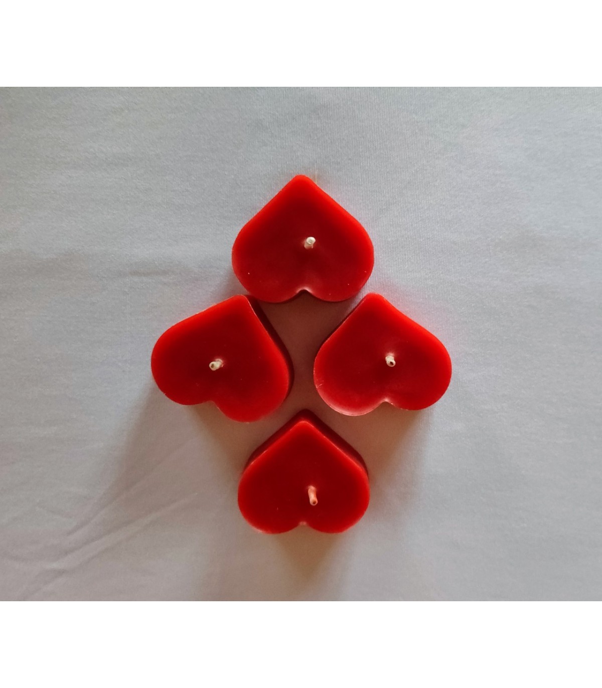 Elegancki zestaw czterech świec w kształcie serca, wykonanych w 100% z naturalnego wosku pszczelego. Idealny jako dekoracja, prezent (Walentynki, rocznice, ślub) lub element romantycznej aranżacji wnętrz.